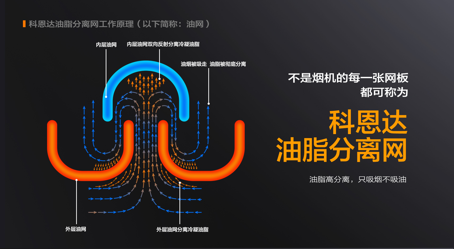 2023年,科恩免清洗煙機(jī)問(wèn)世,科恩達(dá)網(wǎng)板再添核心技術(shù),科恩達(dá)油脂分離網(wǎng)就此誕生。科恩達(dá)油脂分離網(wǎng)采用易潔太空壓鑄鋁材,經(jīng)過(guò)酸洗-噴砂工藝加之特氟龍噴涂最后高溫?zé)Y(jié),不僅不沾油、易清潔更好打理。其采用獨(dú)特的多層疊排U型錯(cuò)層結(jié)構(gòu)設(shè)計(jì),實(shí)現(xiàn)油脂分離度高達(dá)96%以上(第三方權(quán)威機(jī)構(gòu)測(cè)定),它在高效解決油煙油脂分離和冷凝的同時(shí),還能很好地起到阻燃隔火的效果,更好解決廚房安全隱患,徹底告別煙機(jī)內(nèi)部清洗難題,保證煙機(jī)持久大吸力,延長(zhǎng)煙機(jī)使用壽命。