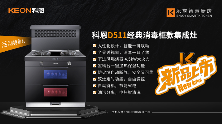 廚房安全不容小覷,科恩D511內置高敏防火墻安全系統,當吸煙倉吸入明火即時0秒斷氣、斷電并發出警報,360°保障孩子下廚安全,媽媽安心,孩子順心!