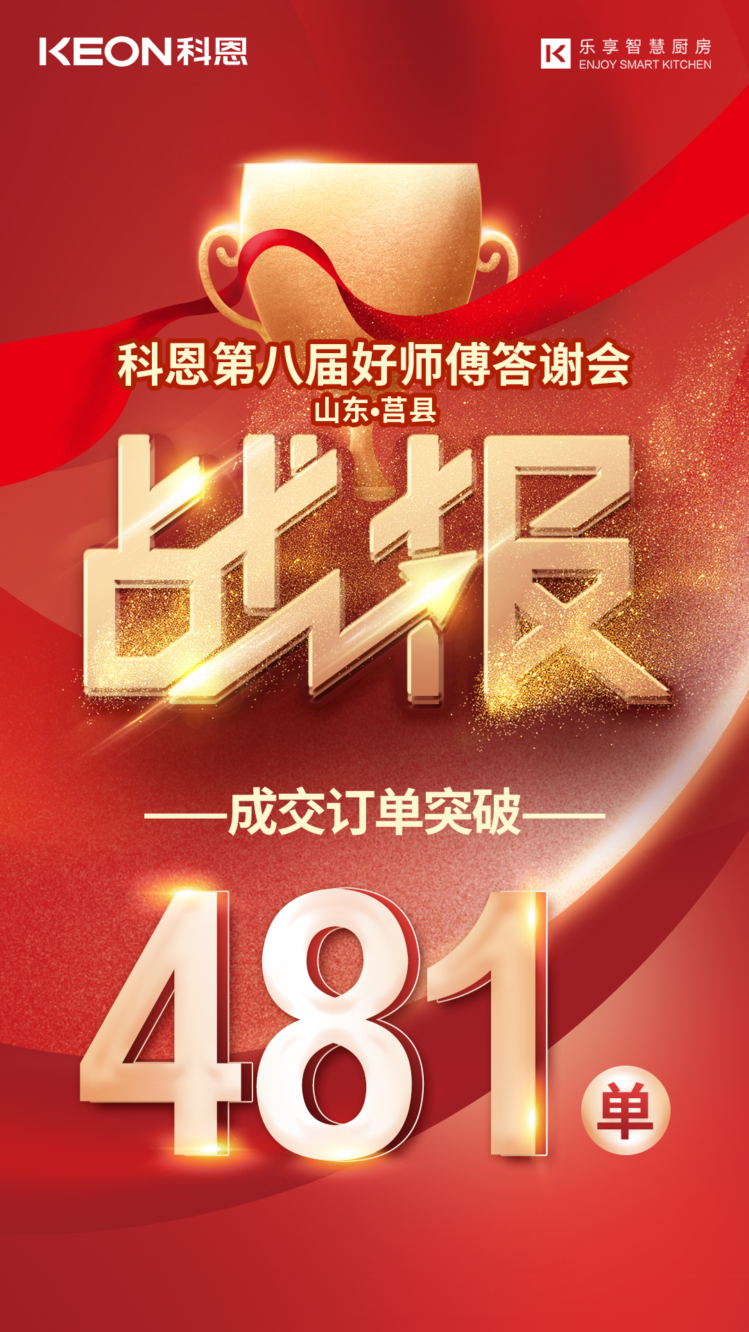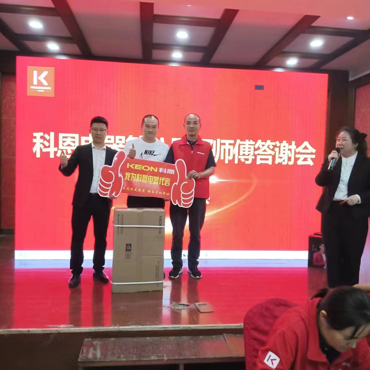 全國科恩專賣店感恩回饋活動正在如火如荼進行,4月13日晚,科恩山東莒縣專賣店接力圍場專賣店開展“科恩電器第八屆好師傅答謝會”,最終以481單的好成績圓滿落幕。