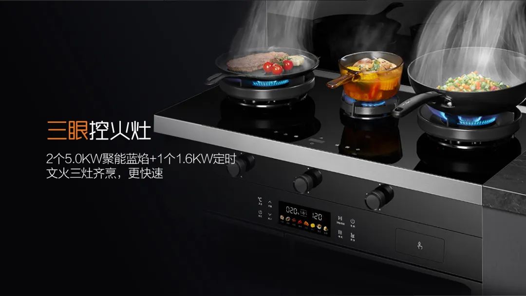 三灶同烹 美味加速!A3系列特有的三灶同烹,實打實做到開一次火,搞定兩菜一湯,對于兩口之家也十分適用。