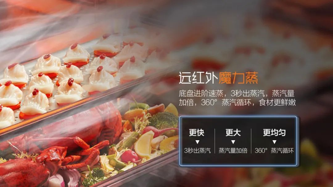 遠紅外魔力蒸:底盤進階速蒸,3秒出蒸汽,蒸汽量加倍,360°蒸汽循環