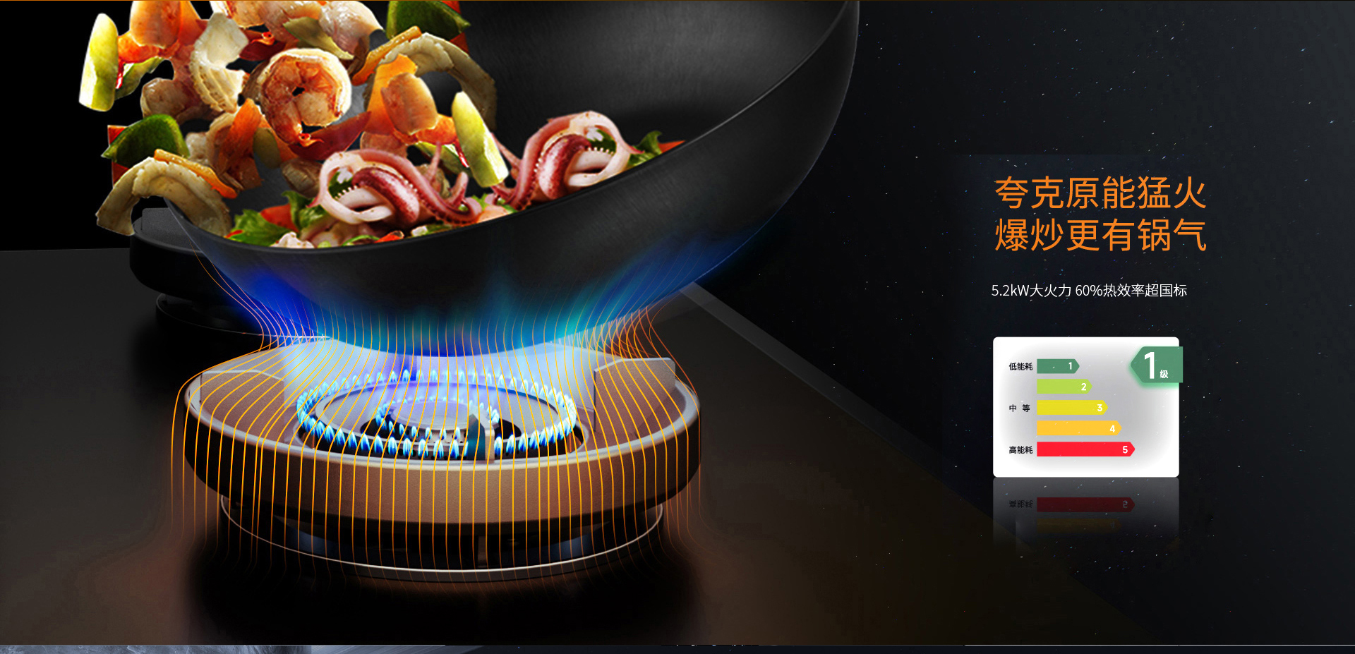 科恩防爆免清洗集成灶采用夸克能原猛火,爆炒更有鍋氣。G系列標(biāo)配5.2KW大火力,更適宜爆炒,更符合中國人烹飪需求。