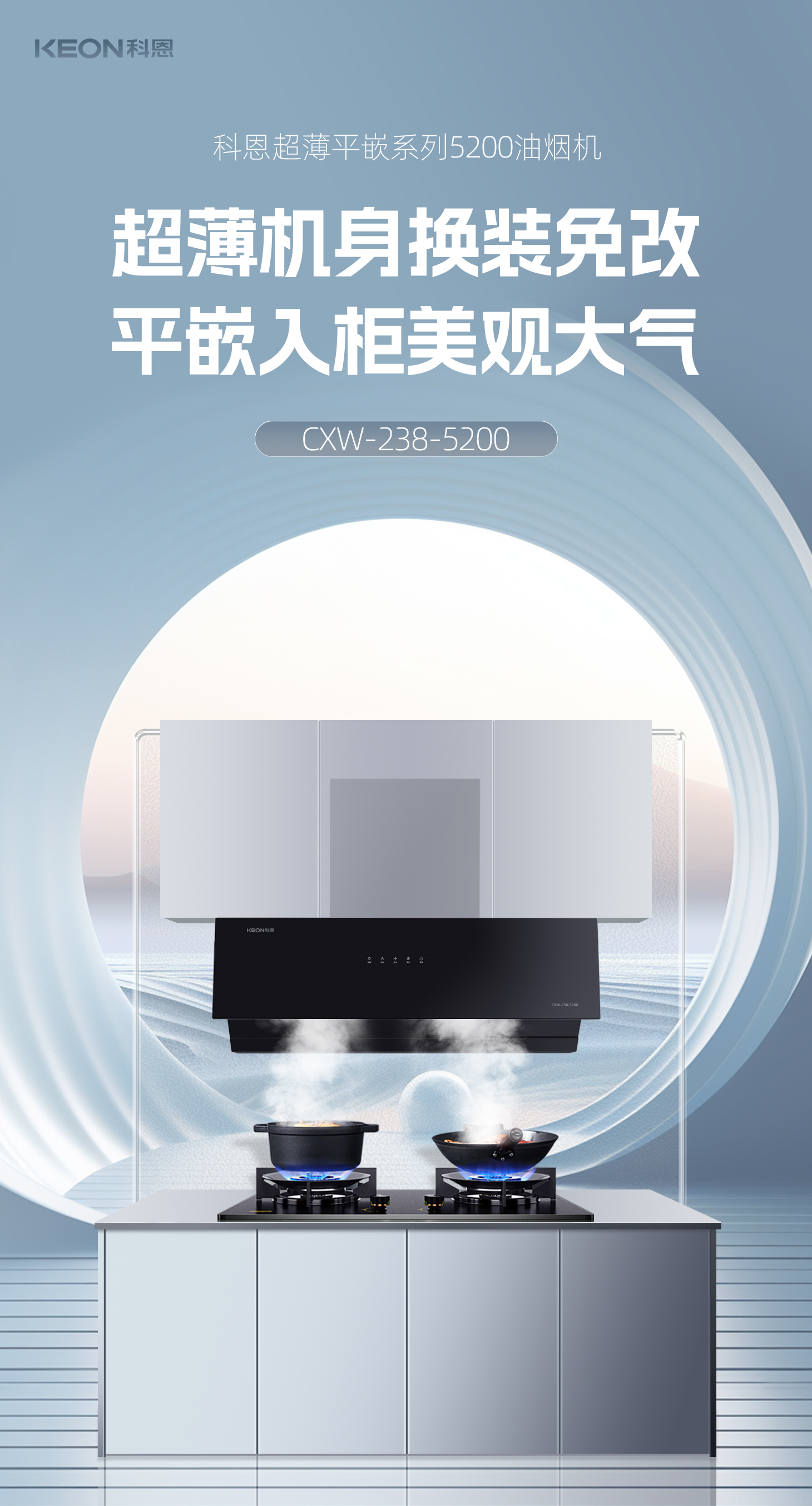2024年,超薄煙機忽然躍入大眾視野,成為廚房主流之選,各大品牌也相繼推出超薄煙機。日前,科恩超薄煙機系列也再添成員5200