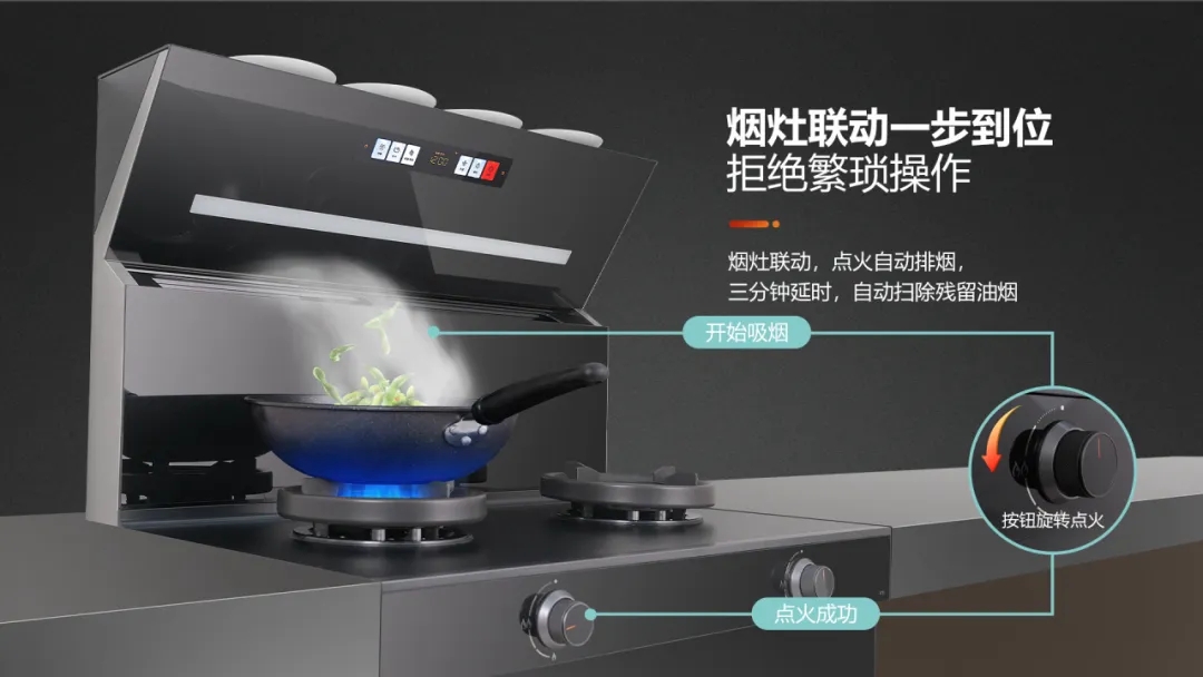 煙灶聯(lián)動功能,避免了忘開煙機(jī)的煩惱。