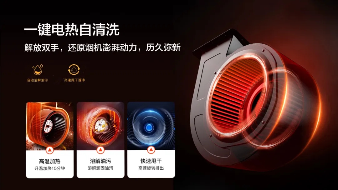 一鍵電熱自清洗,解放雙手,還原煙機(jī)澎湃動力,歷久彌新。