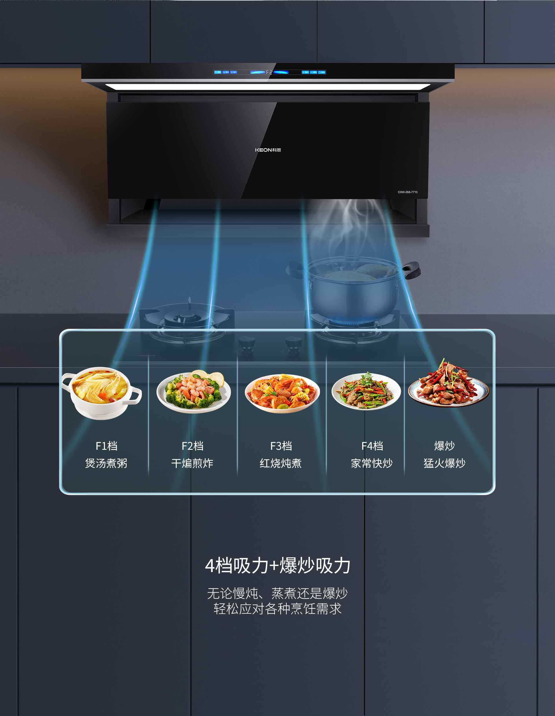在現代家居生活中,廚房不再僅僅是烹飪的場所,更是人們追求品質與享受的空間。而科恩仰望系列7710智能聯動煙機的出現,宛如一顆璀璨的明星,為廚房帶來了革命性的變化。