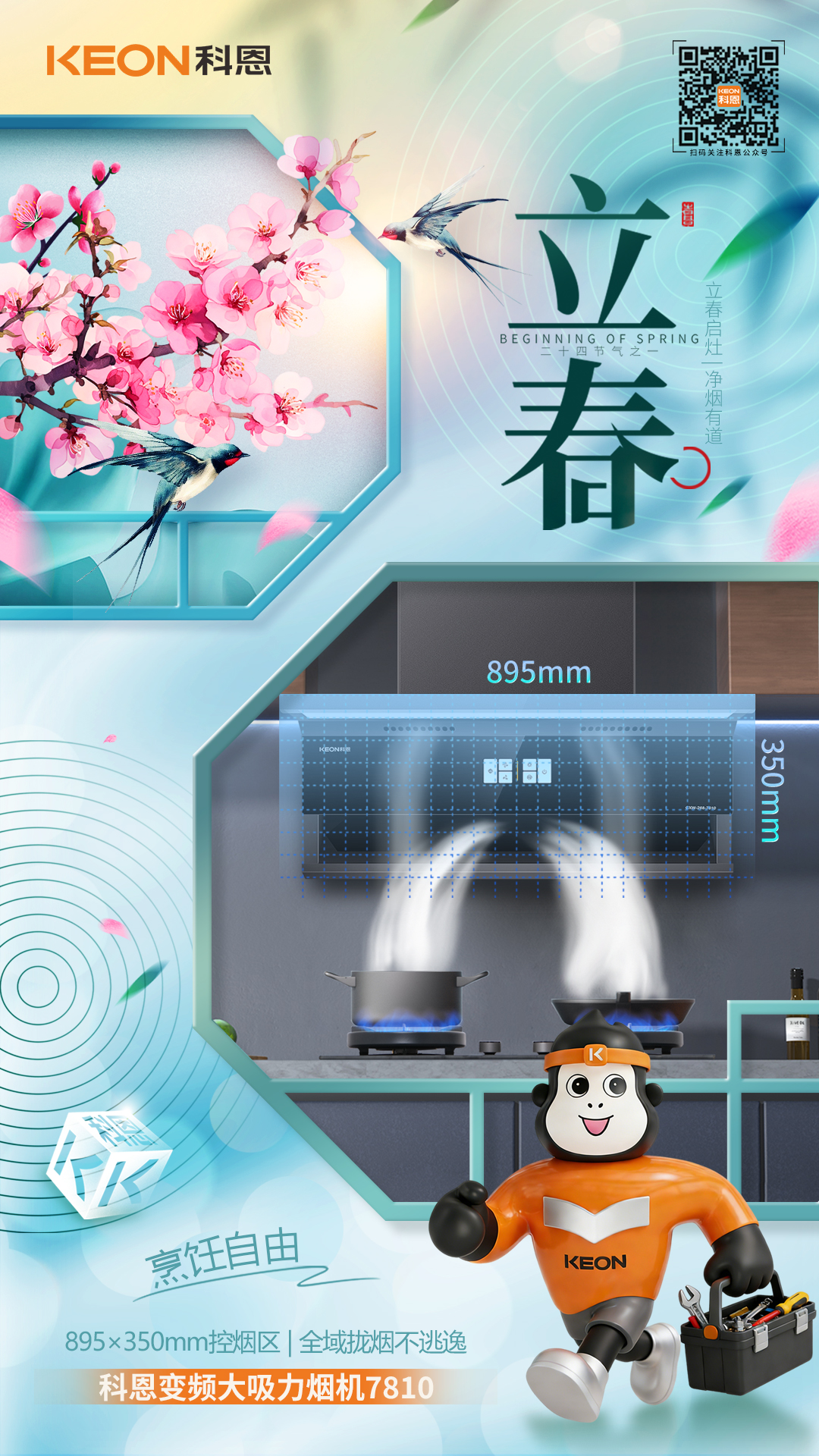 立春啟灶,凈煙有道。新綠破寒時,廚香伴清歡,科恩煙機 7810,以立春煥新之姿,重構「無煙廚房」的烹飪美學,讓每一次掌勺都成為自由呼吸的享受。