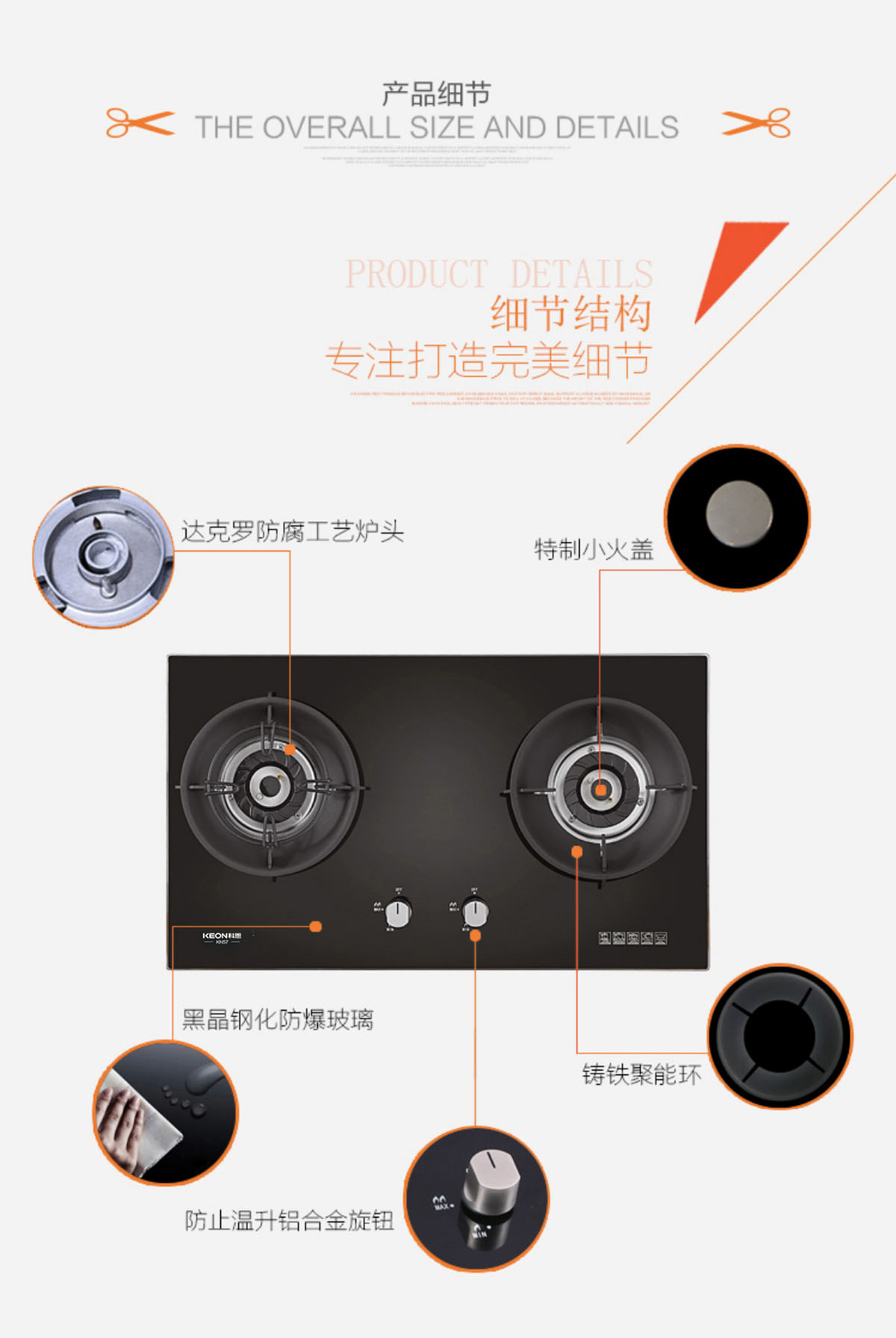 - 微動開關控火系統,靈敏強勁。氣電分離,杜絕氣電隱患。
