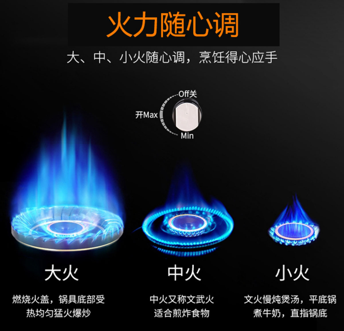 - 特制小火蓋,火藍有力,熱效率達65%-67%,高于一級能效標準。