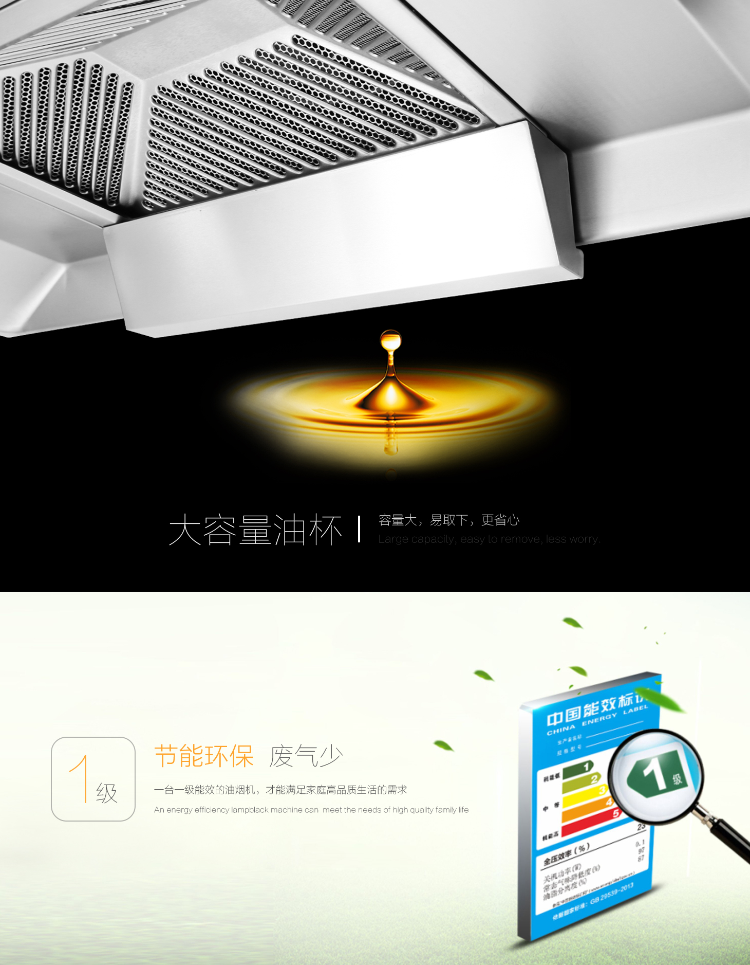 蜂窩狀濾油網(wǎng),迅速導油并徹底分離油煙。