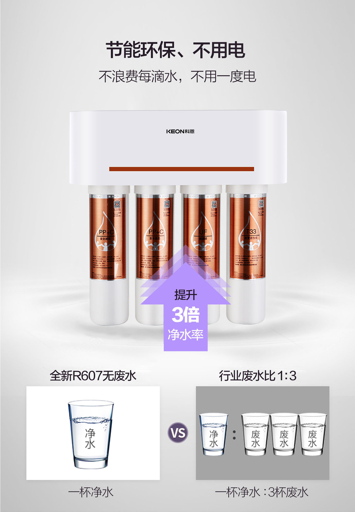 - 卡接式一體式濾芯,3秒換芯,方便快捷。