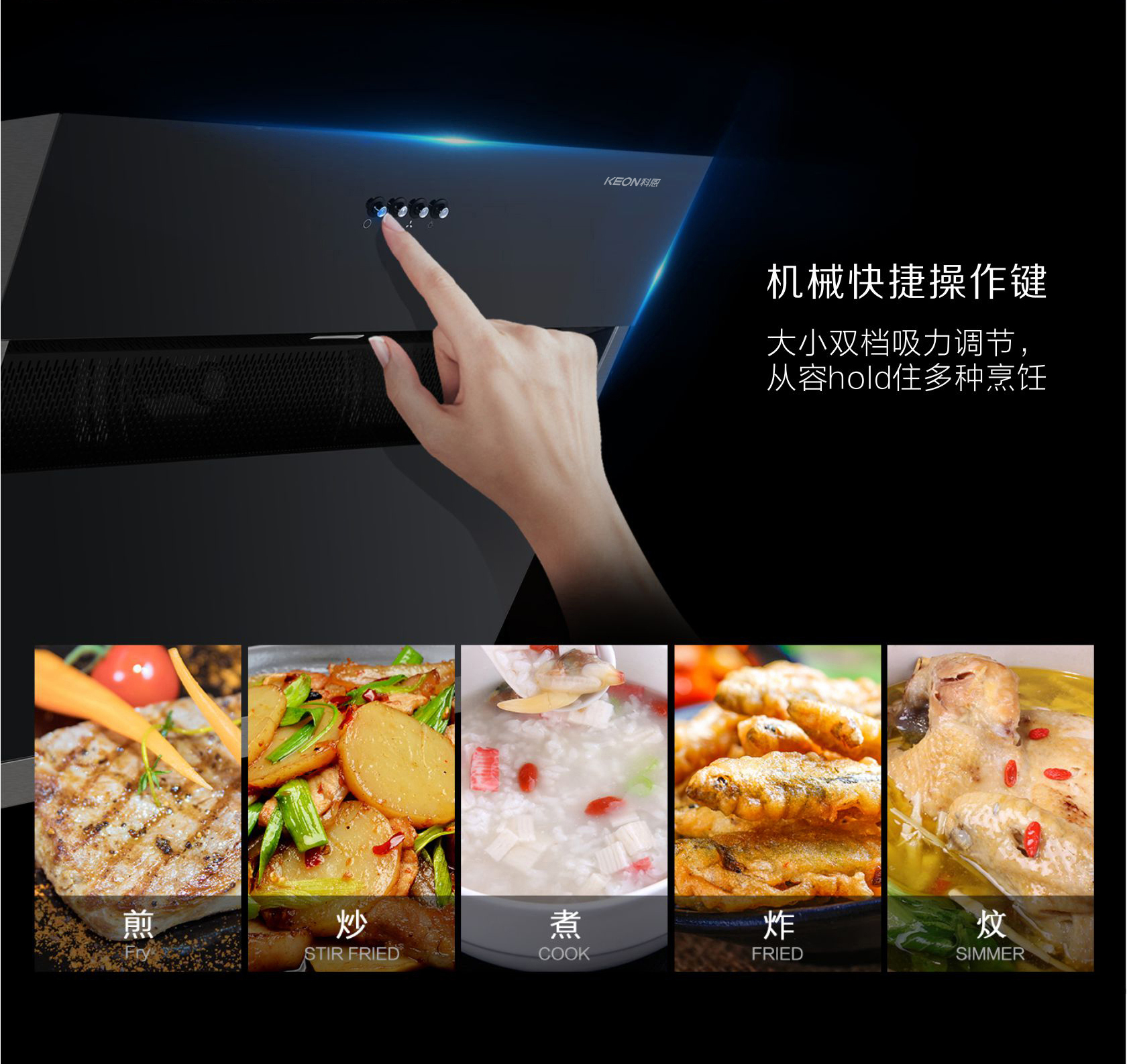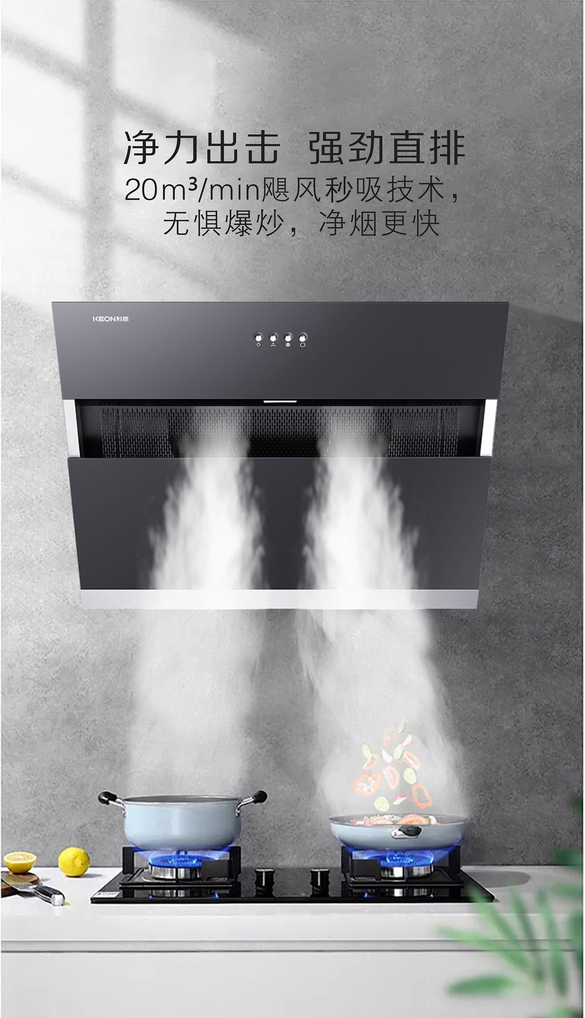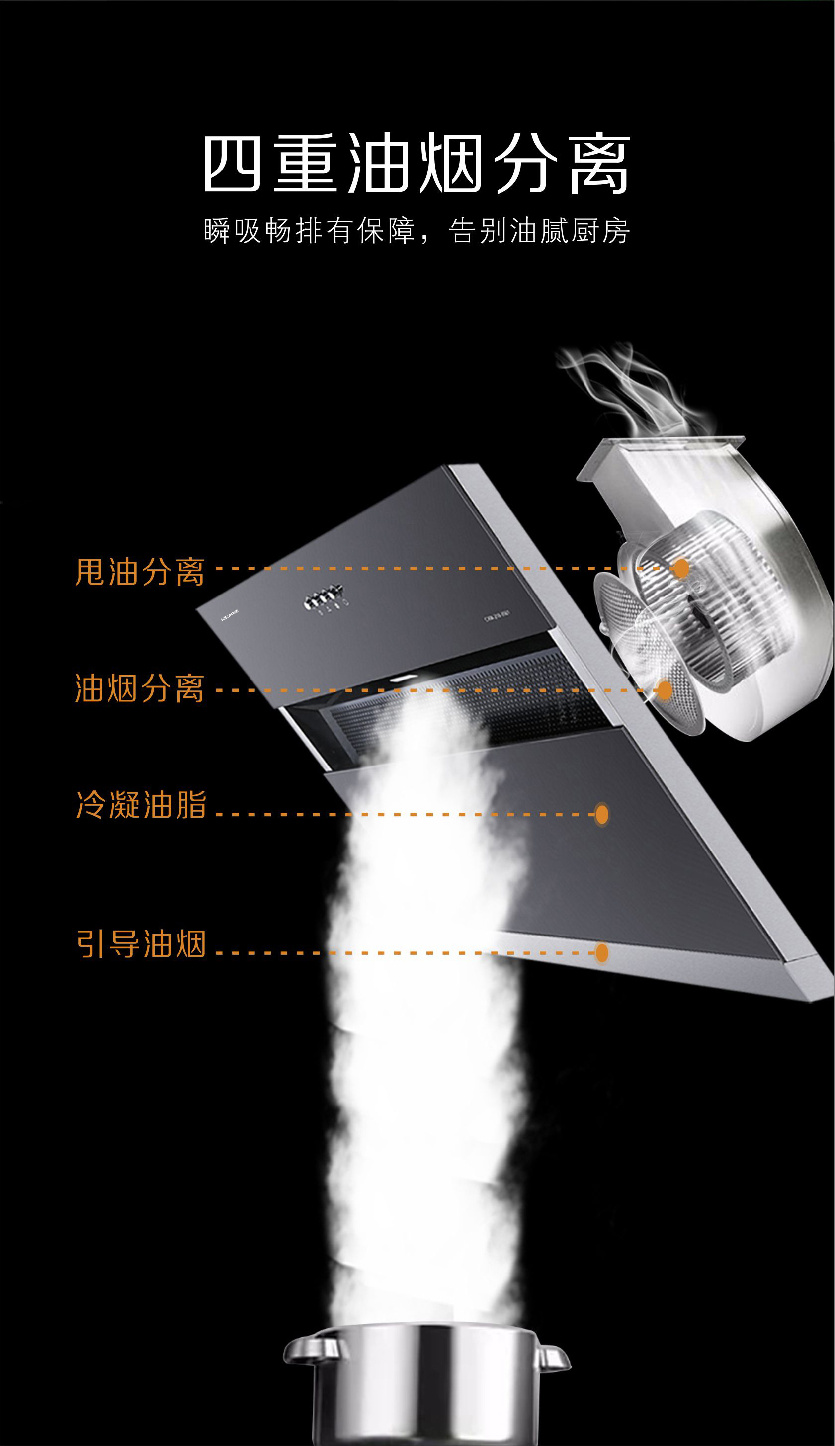 - 凈力出擊,強(qiáng)勁直排,颶風(fēng)爆吸技術(shù),無(wú)懼爆炒,凈煙更快。