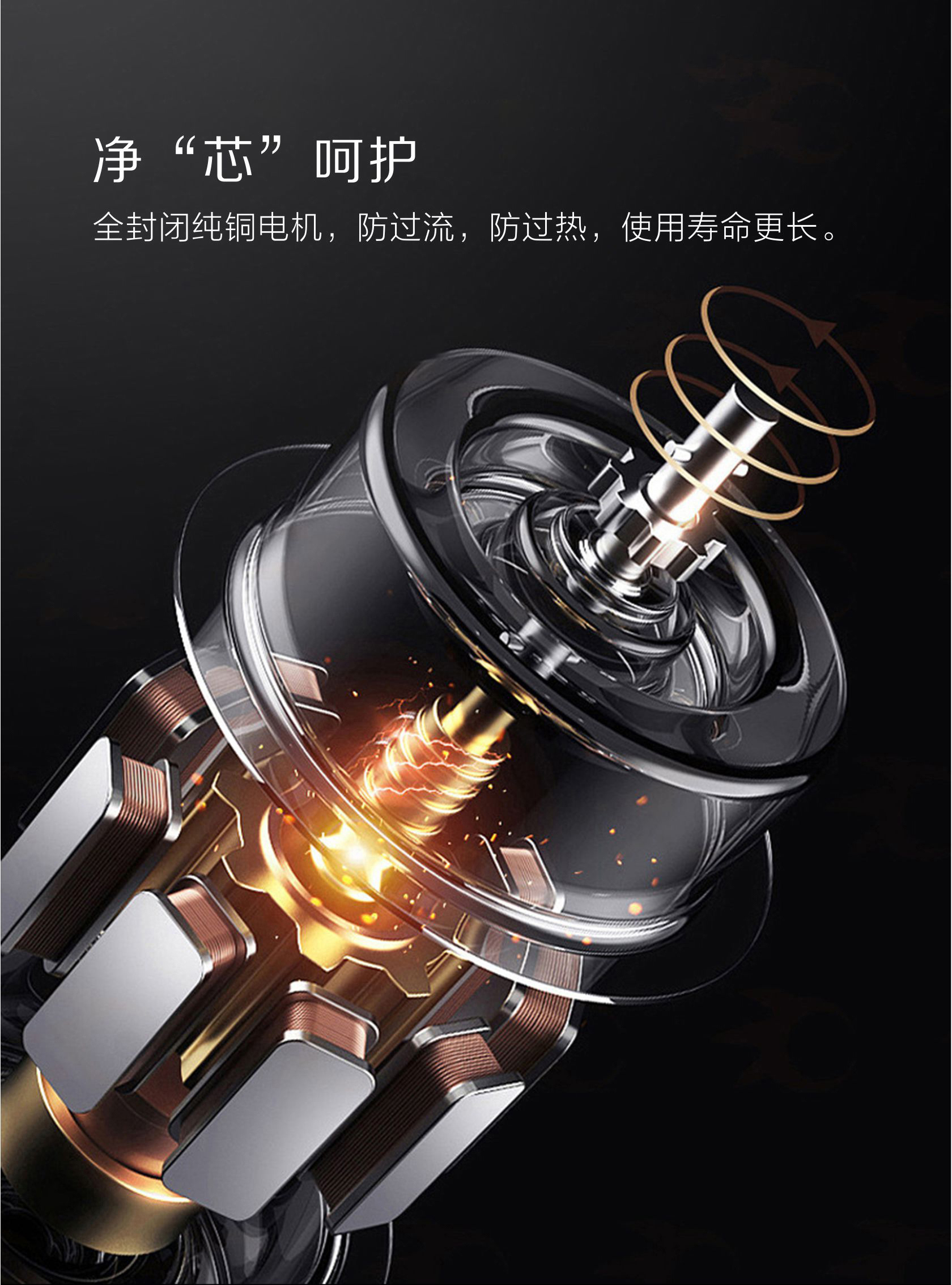 - 凈“芯”呵護(hù),全封閉純銅電機(jī),防過(guò)流,防過(guò)熱,使用壽命更長(zhǎng)。