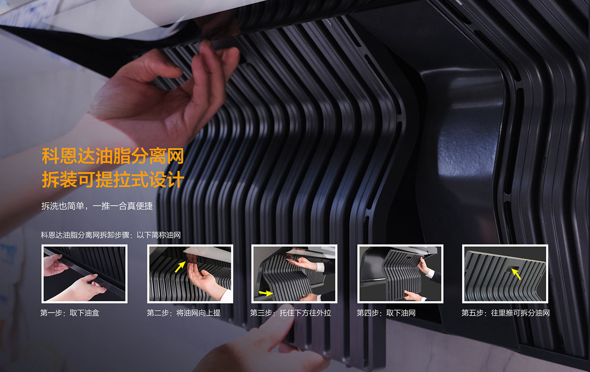 科恩達油脂分離網拆裝可提拉式設計,拆洗也簡單,一推一合真便捷