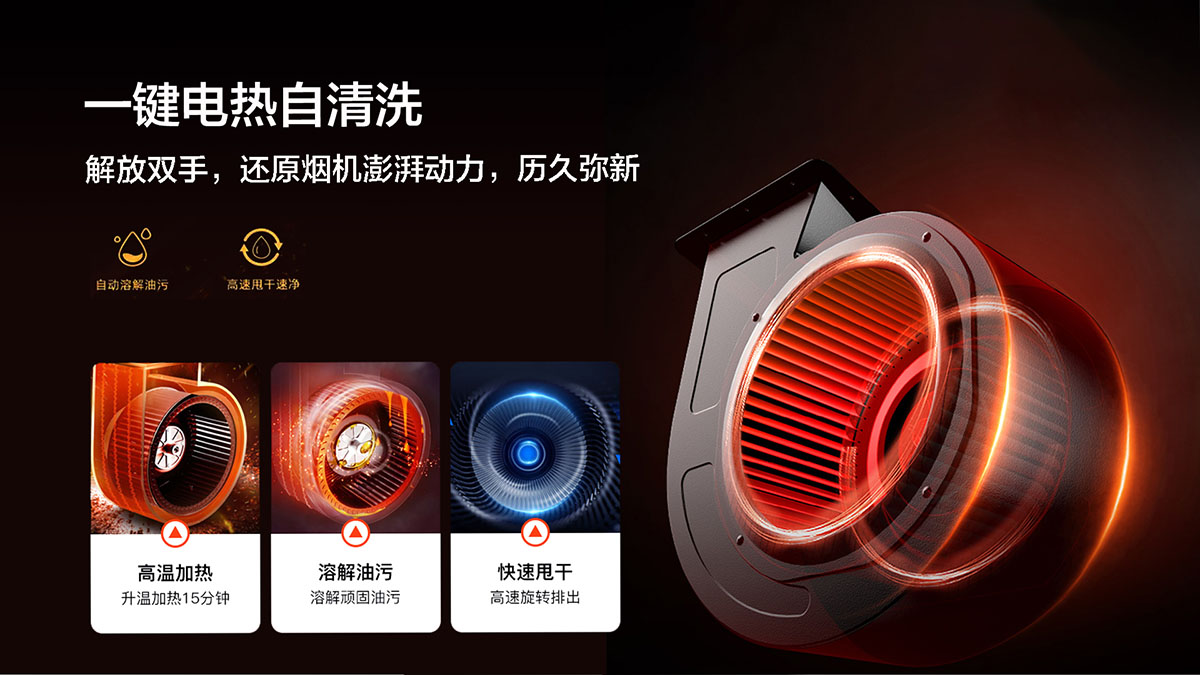 一鍵電熱自清洗,解放雙手,還原煙機澎湃動力,歷久彌新