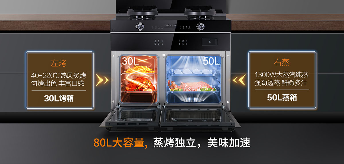 80L大容量,蒸烤獨立,美味加速