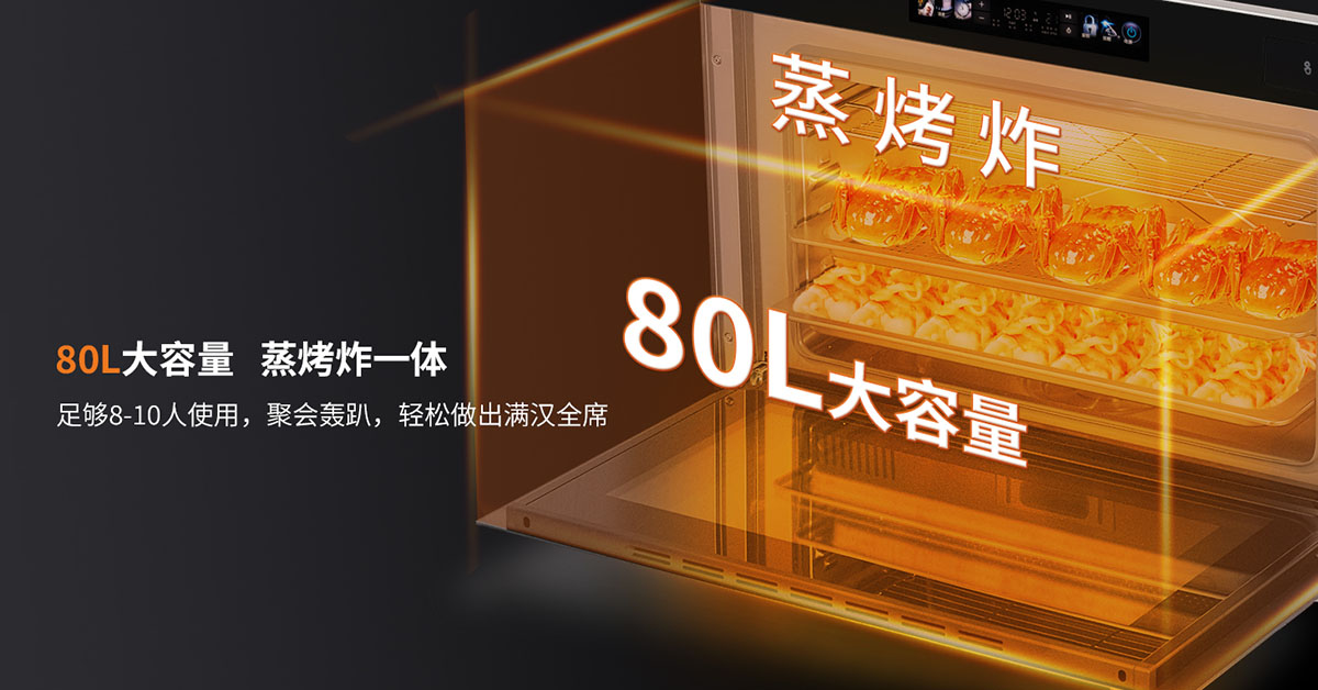 80L大容量,蒸烤炸一體,足夠8-10人使用,輕松做出滿漢全席