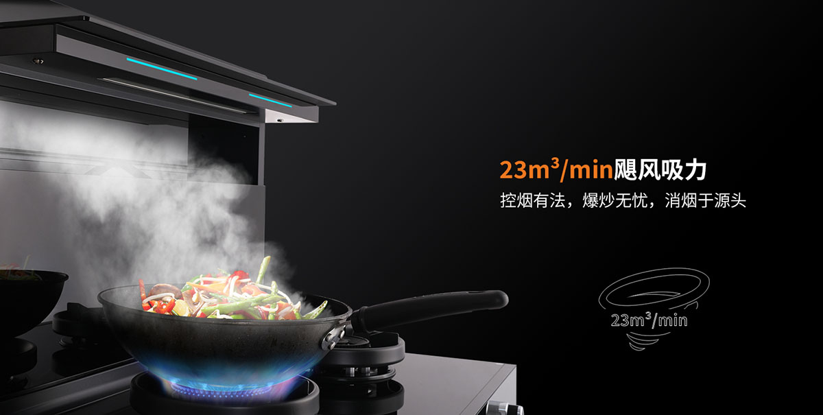 23m³颶風吸力,控煙有法,爆炒無憂,消煙于源頭