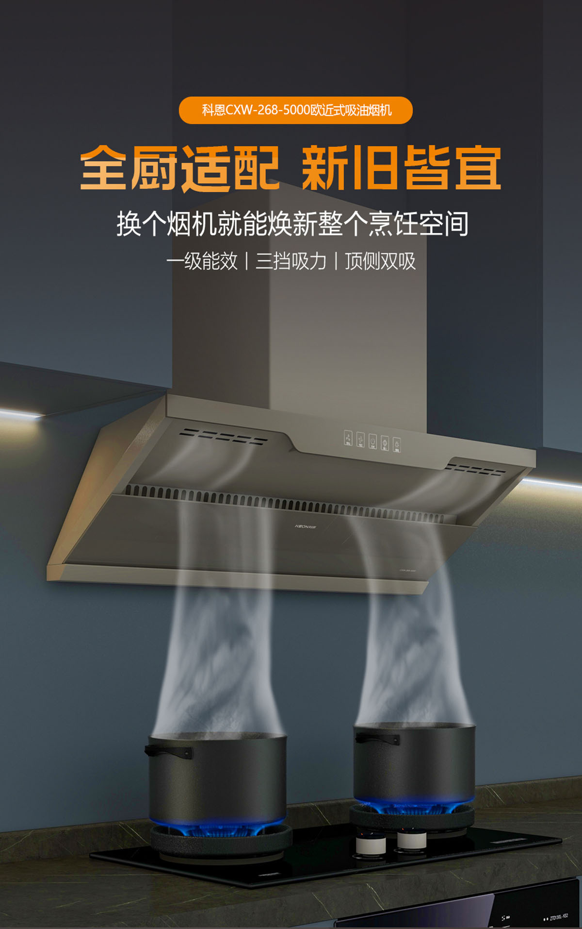兩檔吸力+瞬吸爆炒,掌控油煙,玩轉(zhuǎn)廚房