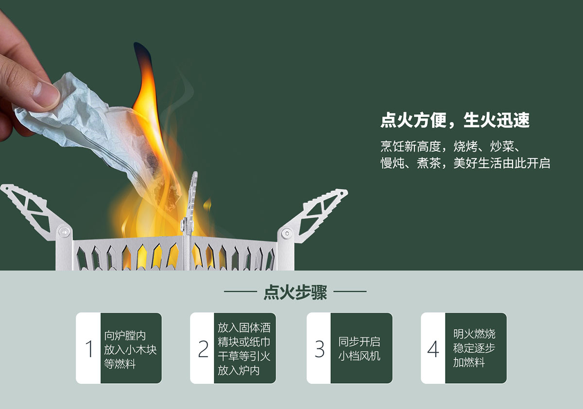科學(xué)結(jié)構(gòu)設(shè)計(jì),點(diǎn)火方便,生火迅速