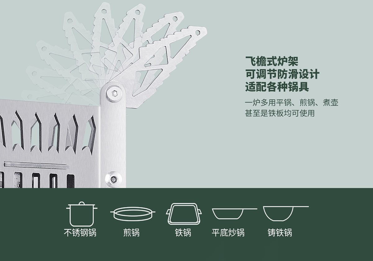 飛檐式可調(diào)節(jié)防滑鍋架,適配各種鍋具