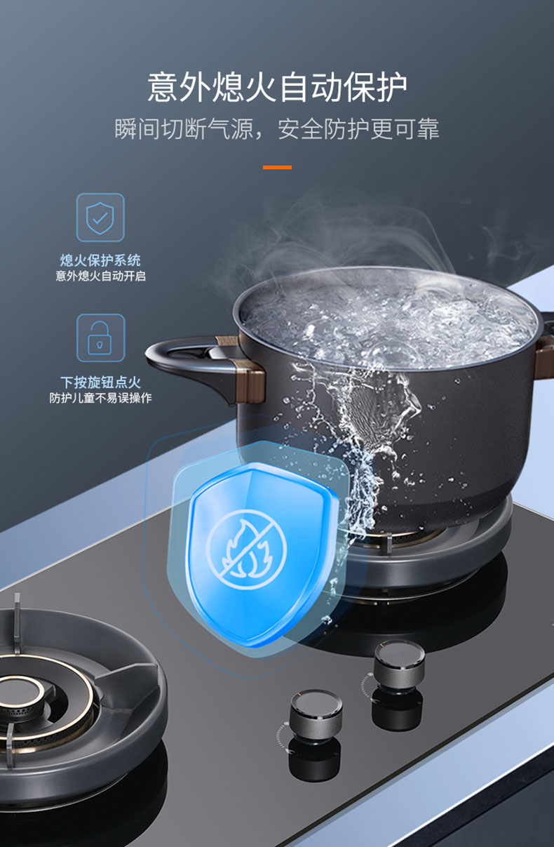 - 意外熄火保護,火滅即刻切斷氣源,安全防護有保障
