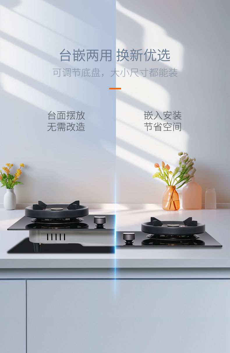 - 臺嵌兩用式,臺面直接放置,安裝不受限;嵌入安裝,完美貼合臺面
